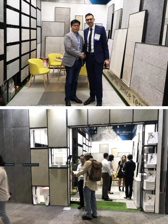 此次參展,天欣科技×佛諾倫莎瓷磚,攜眾多代表行業(yè)水平的工藝和產(chǎn)品亮相國(guó)際市場(chǎng),以多色多面多質(zhì)感現(xiàn)代仿古磚代表工藝開(kāi)發(fā)的2019春季新品、2cm厚磚、水磨石、水泥磚系列為代表,贏得了國(guó)際市場(chǎng)的專業(yè)認(rèn)可。